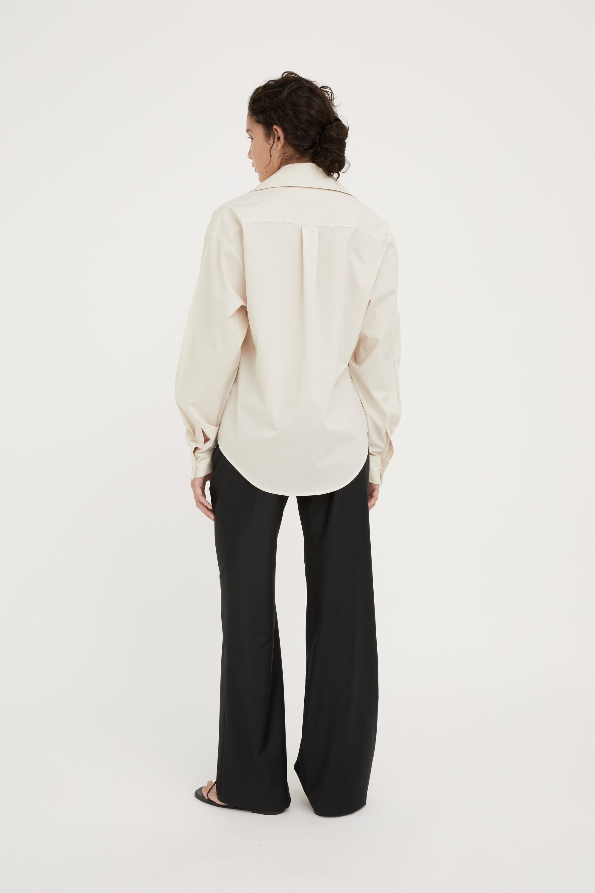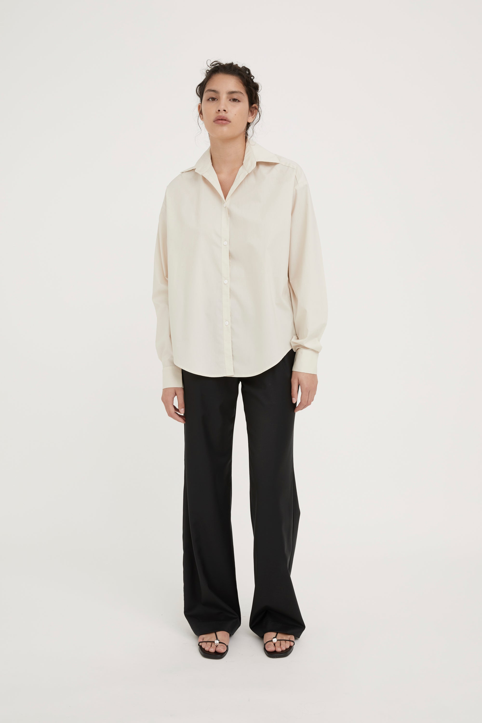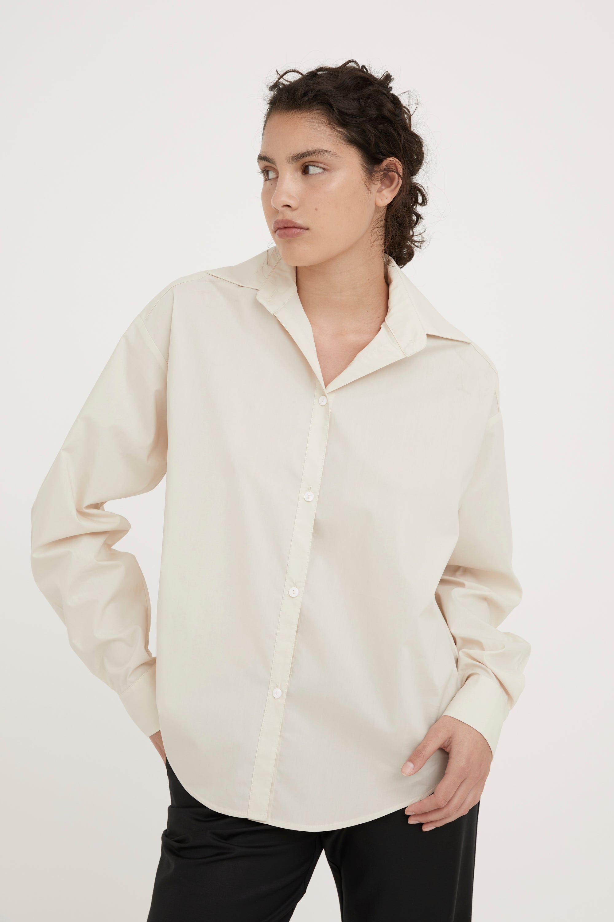 An elevated wardrobe essential, the classic shirt features an exaggerated fit with a button down front, classic shirt collar and sleeve cuffs with buttons and features exaggerated sleeve length detail.