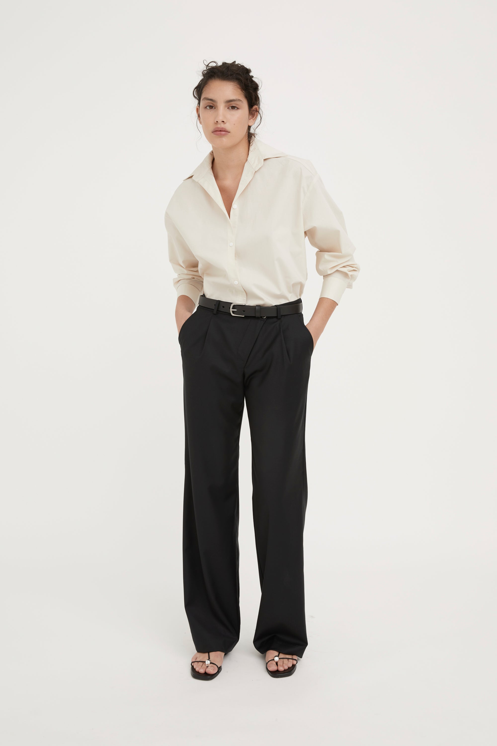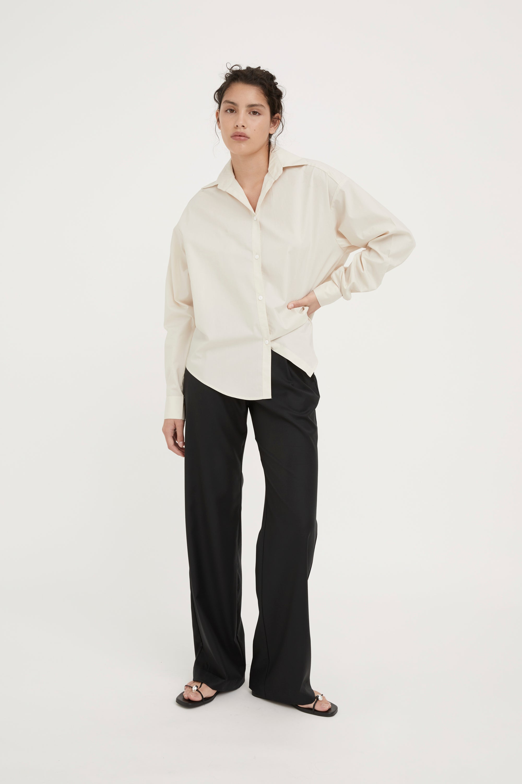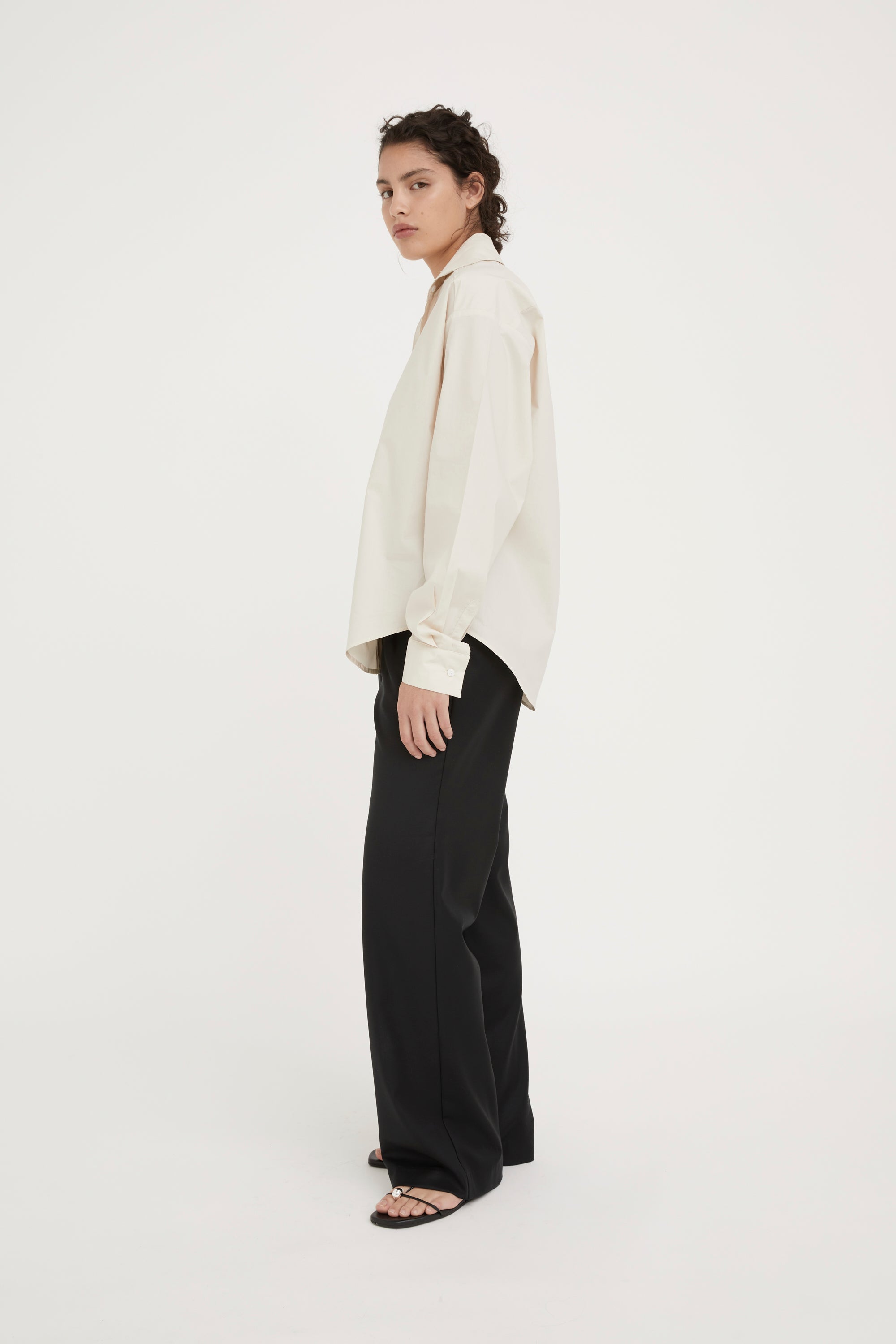 An elevated wardrobe essential, the classic shirt features an exaggerated fit with a button down front, classic shirt collar and sleeve cuffs with buttons and features exaggerated sleeve length detail.