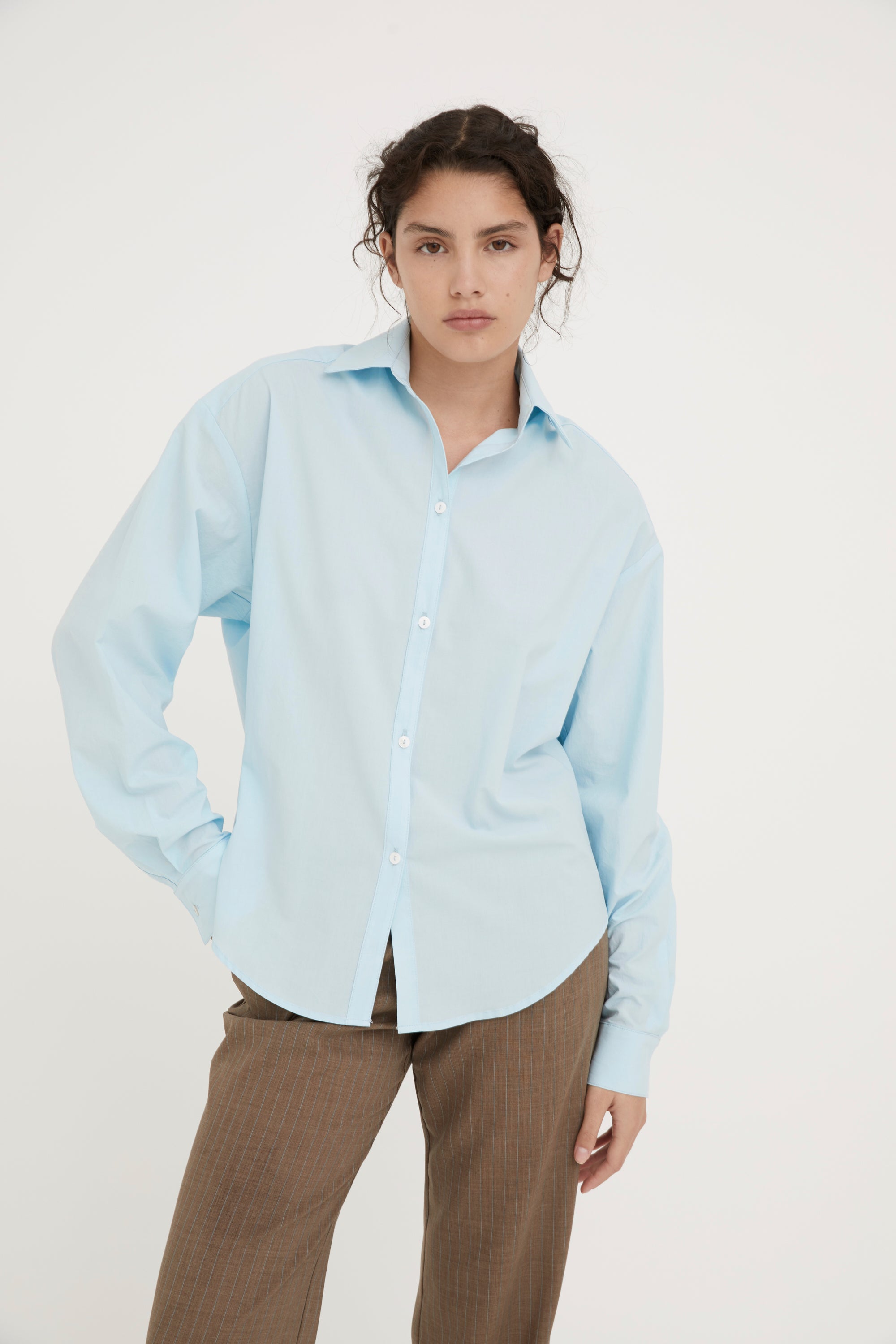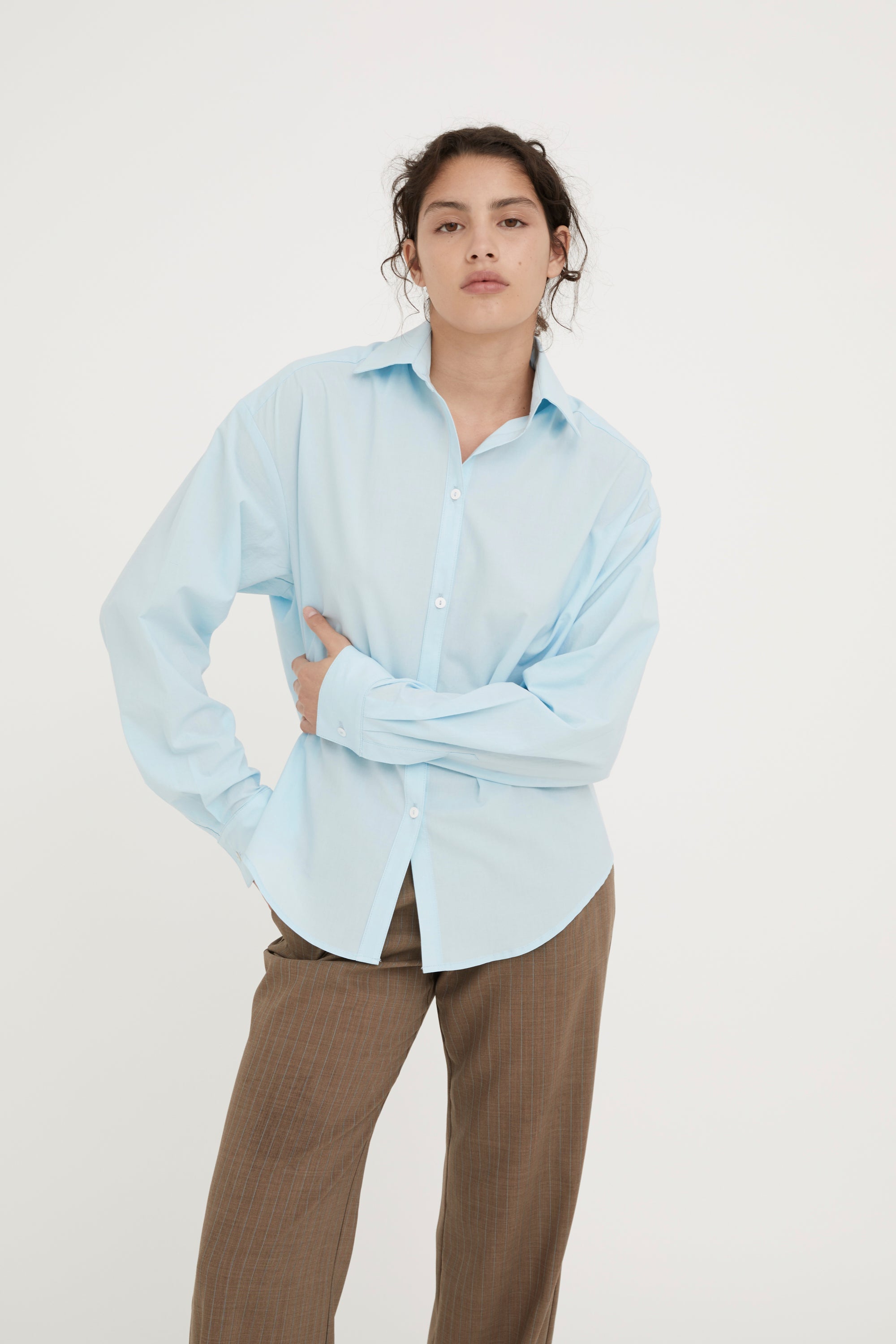 An elevated wardrobe essential, the classic shirt features an exaggerated fit with a button down front, classic shirt collar and sleeve cuffs with buttons and features exaggerated sleeve length detail.