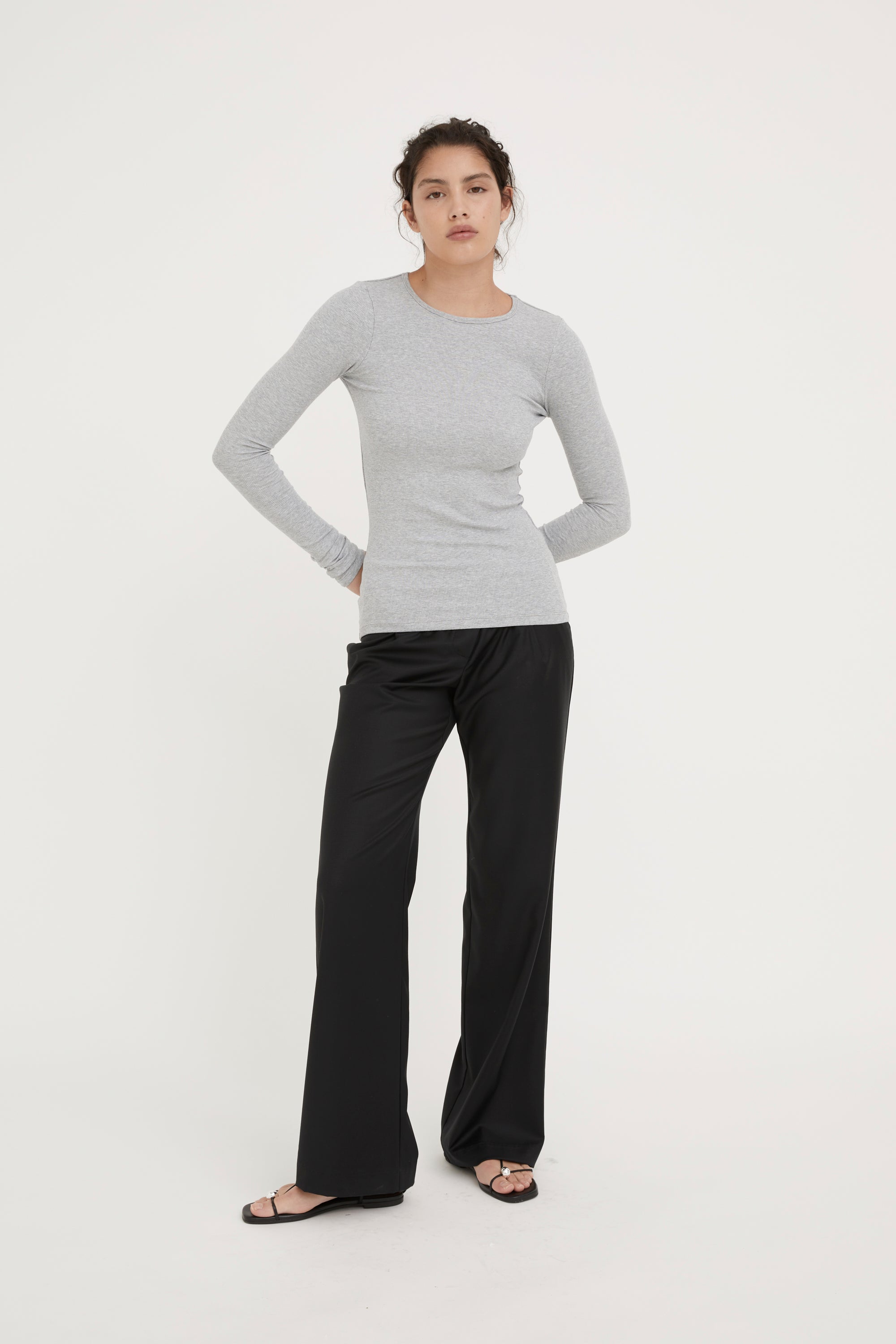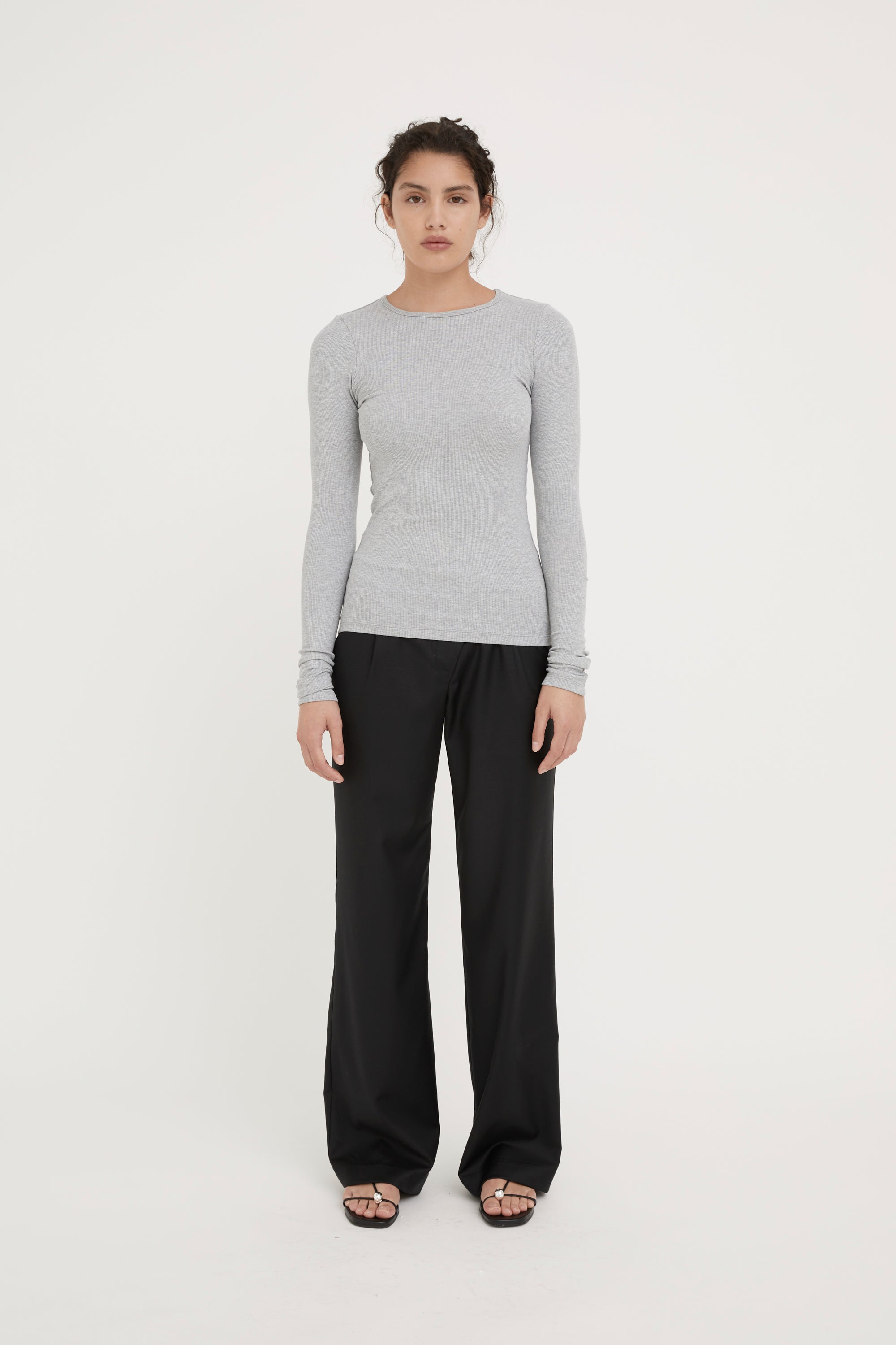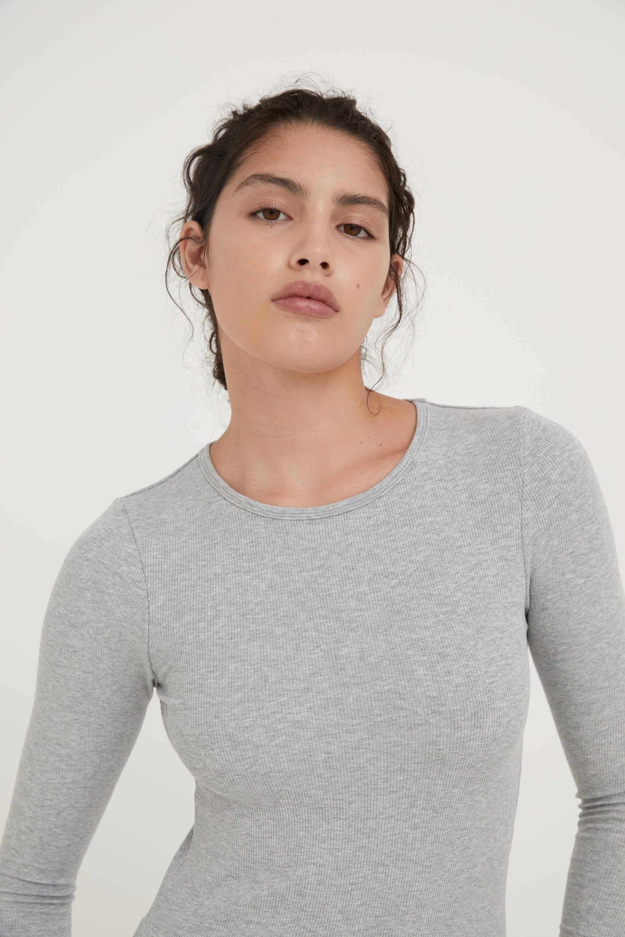 Crafted from premium rib fabrication of soft cotton with exaggerated sleeve length.
