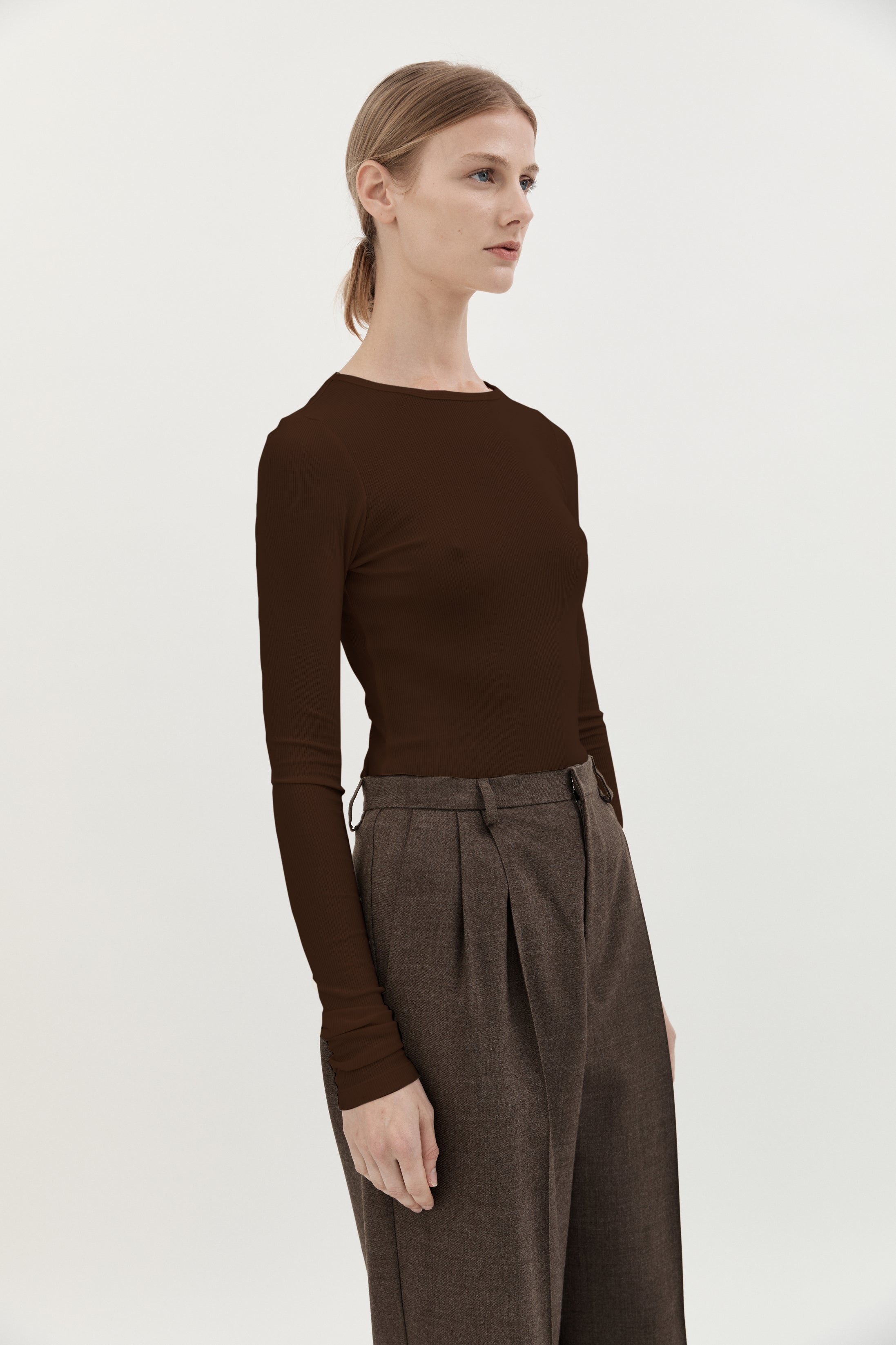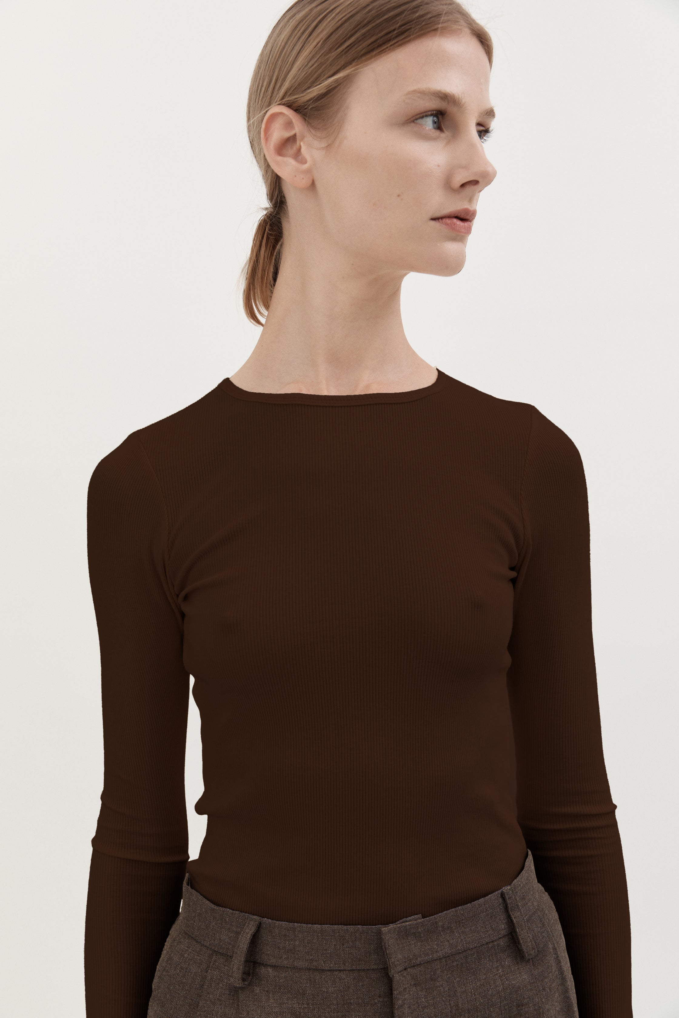 RIB LONG SLEEVE- CHOCOLATE