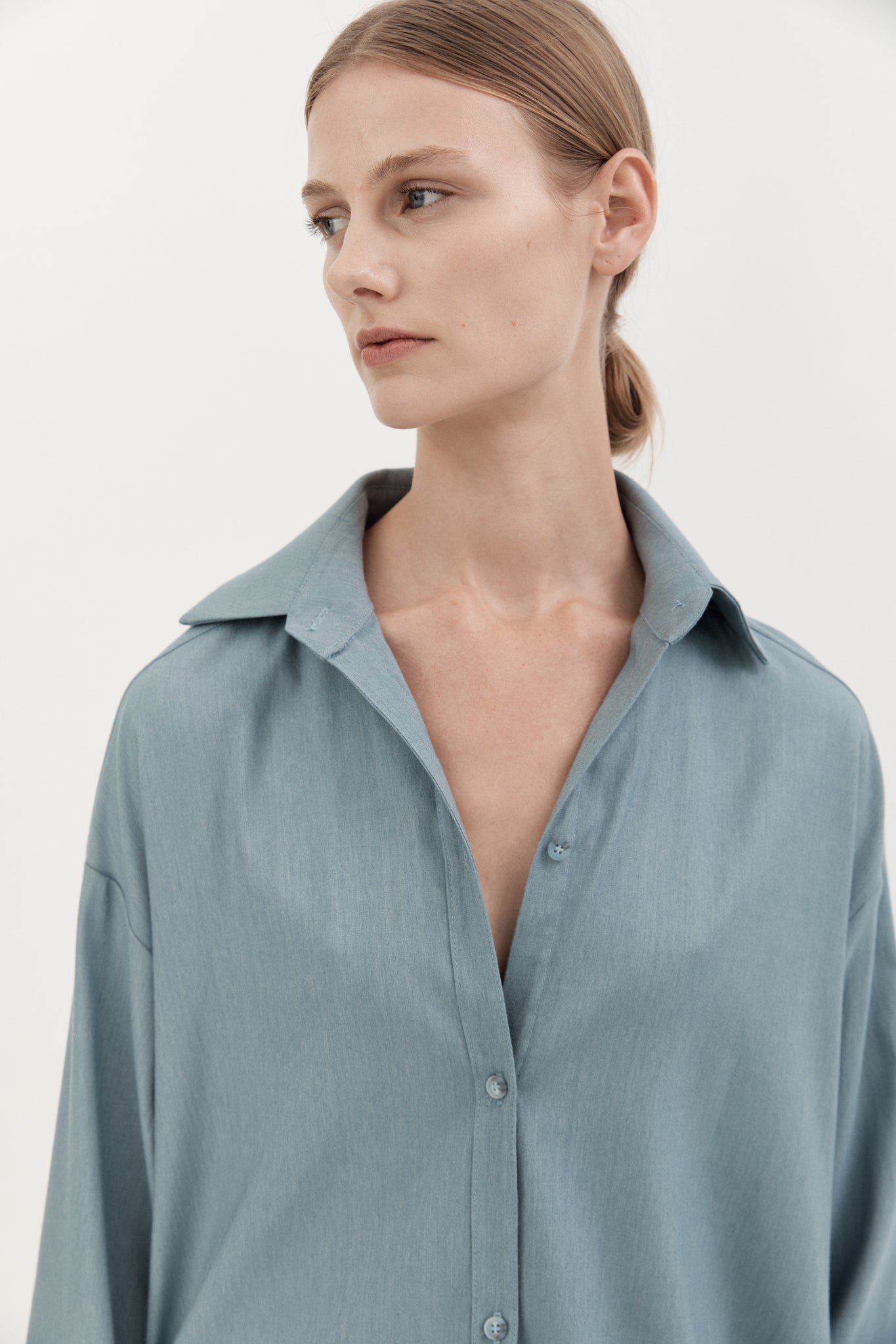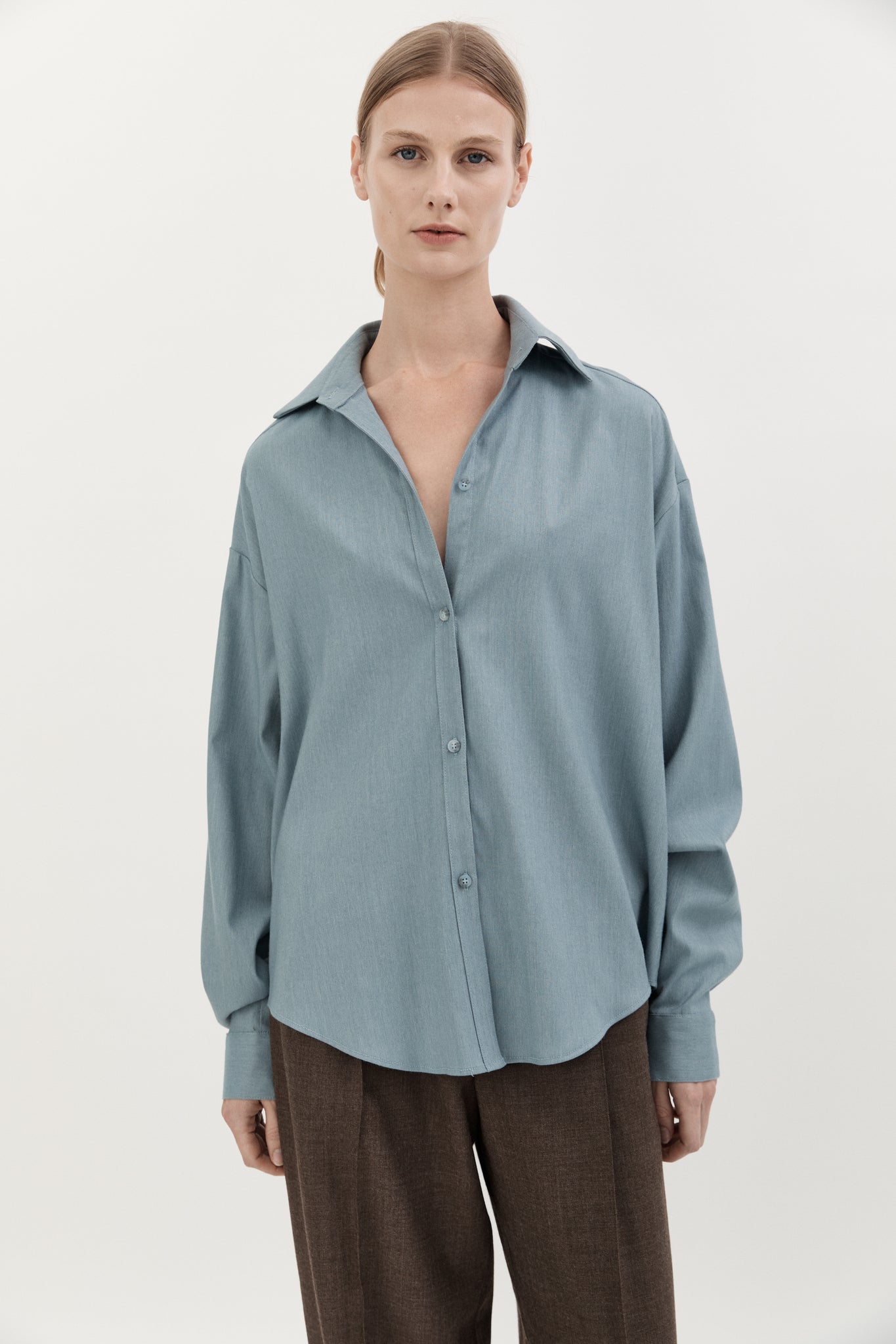 An elevated wardrobe essential, the classic shirt features an exaggerated fit with a button down front, classic shirt collar and sleeve cuffs and features exaggerated sleeve length detail.