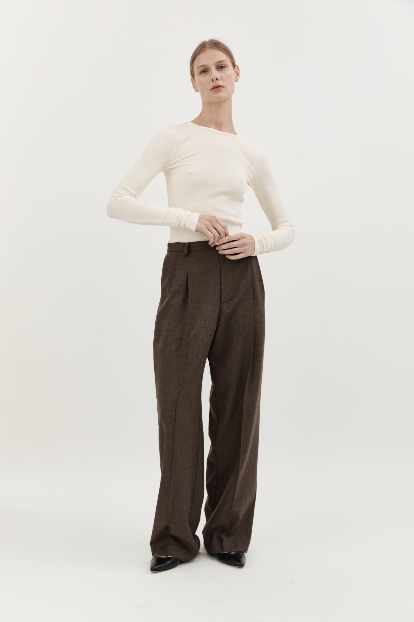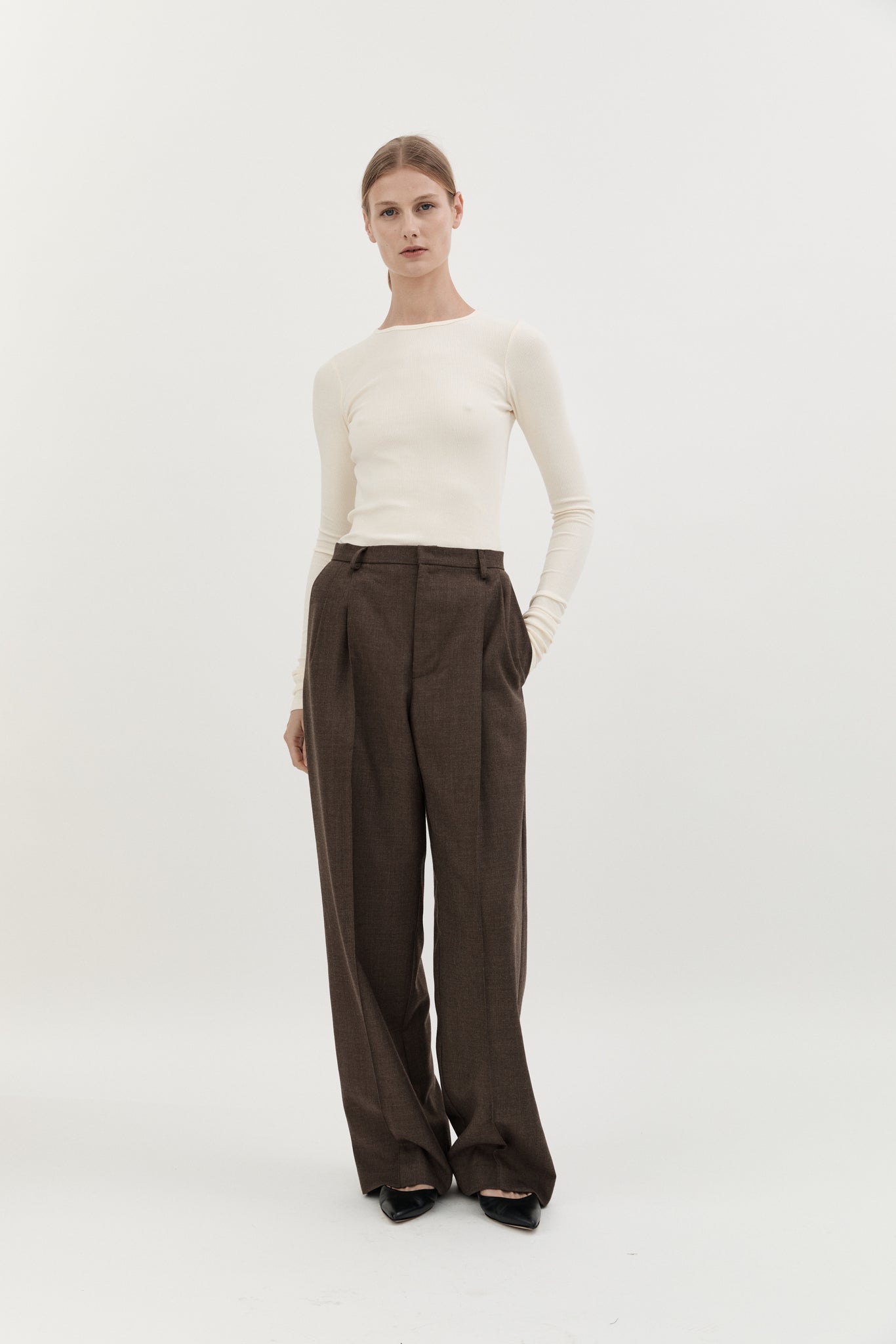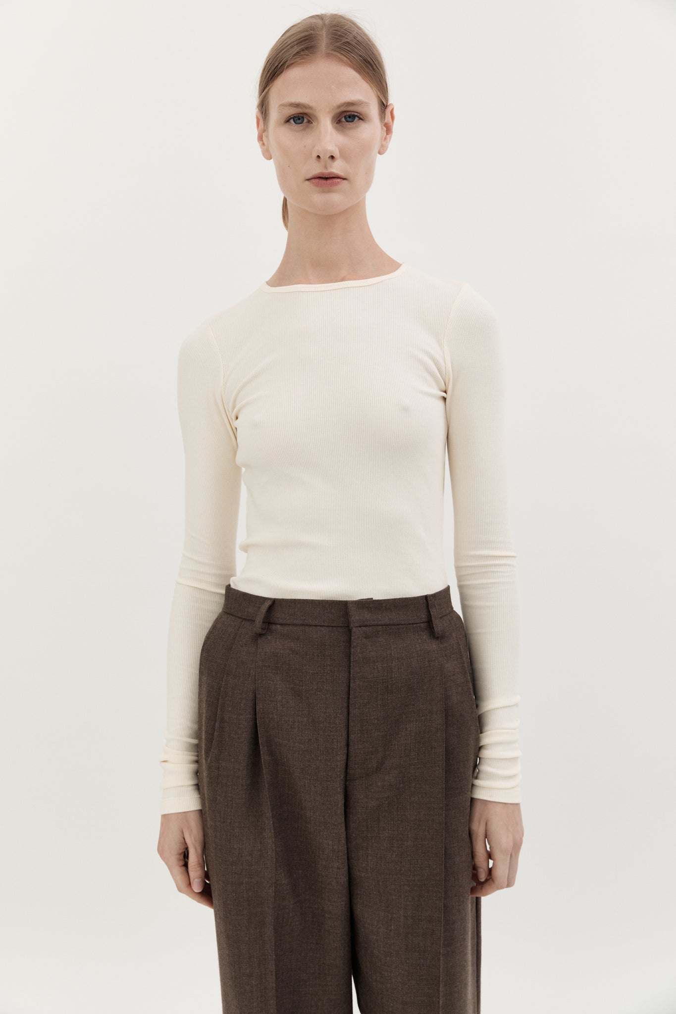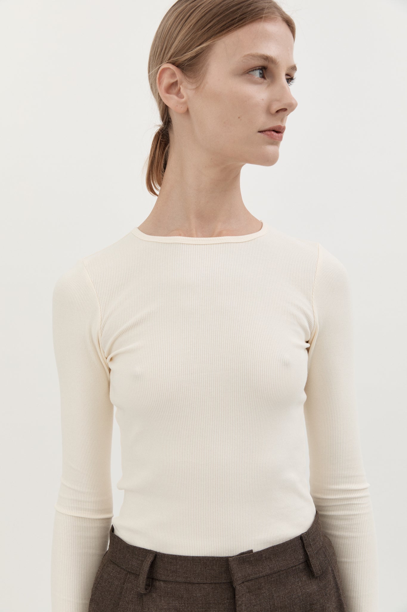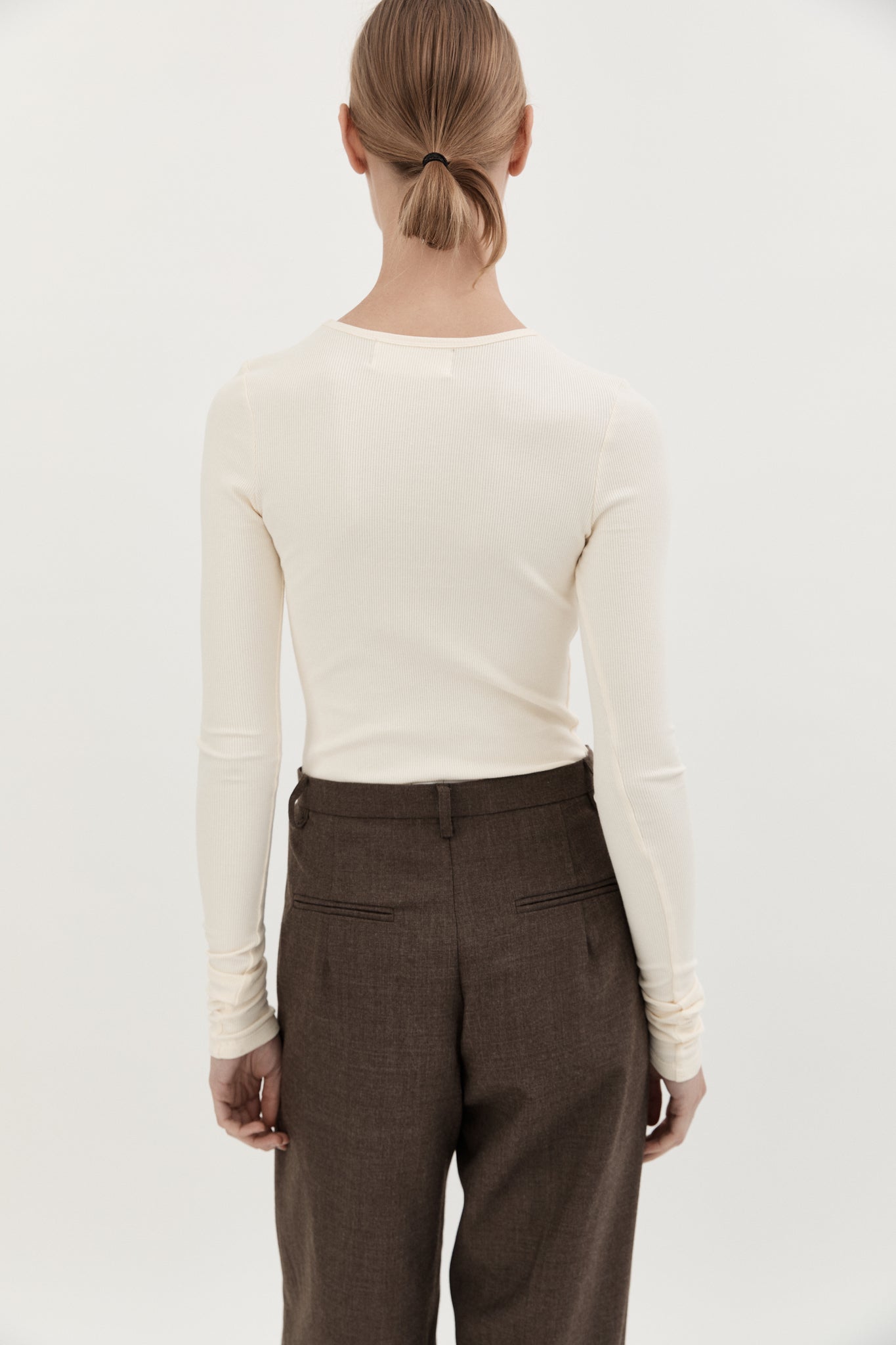 Crafted from premium rib fabrication of soft cotton with exaggerated sleeve length.
